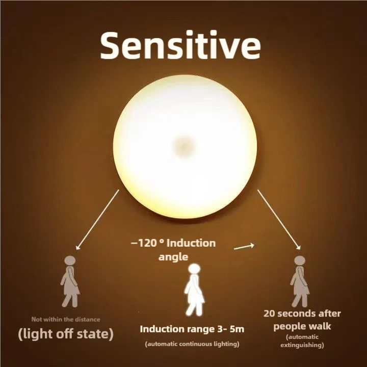 Equipped with a high-precision human body sensor, the lamp detects movement up to 5 meters away and automatically turns off after 30 seconds of inactivity — perfect for nighttime trips or low-light areas.
